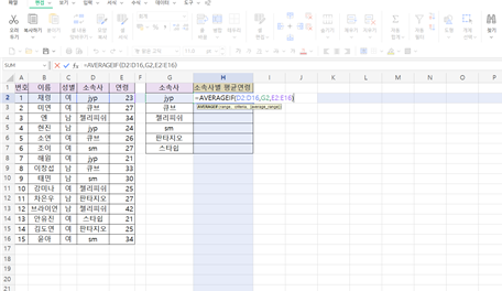엑셀, 한셀에서 특정한 조건의 평균 값 구하는 방법